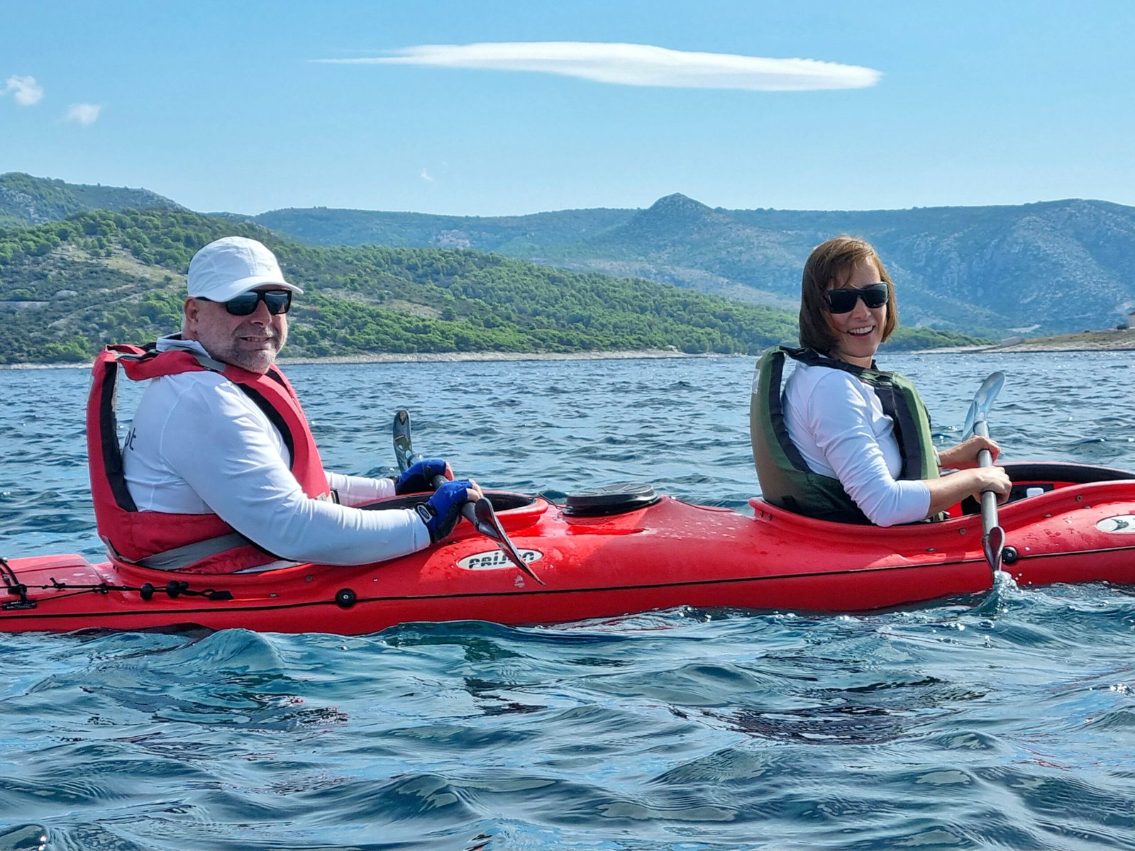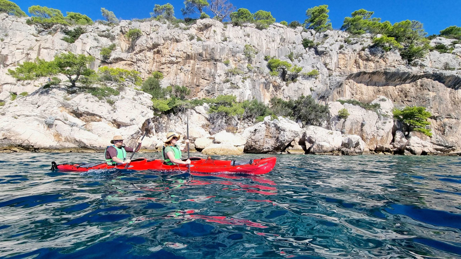 We’ll embark on a true Paklinski Islands kayaking expedition, navigating the open sea and exploring the diverse coastlines of Jerolim, Marinkovac, and Sveti Klement. This full-day kayak adventure offers the opportunity to discover hidden coves, dramatic cliffs, and pristine beaches, all while testing your endurance and paddling skills.